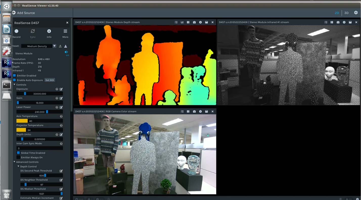 D457 2D View: Depth, IR, RGB